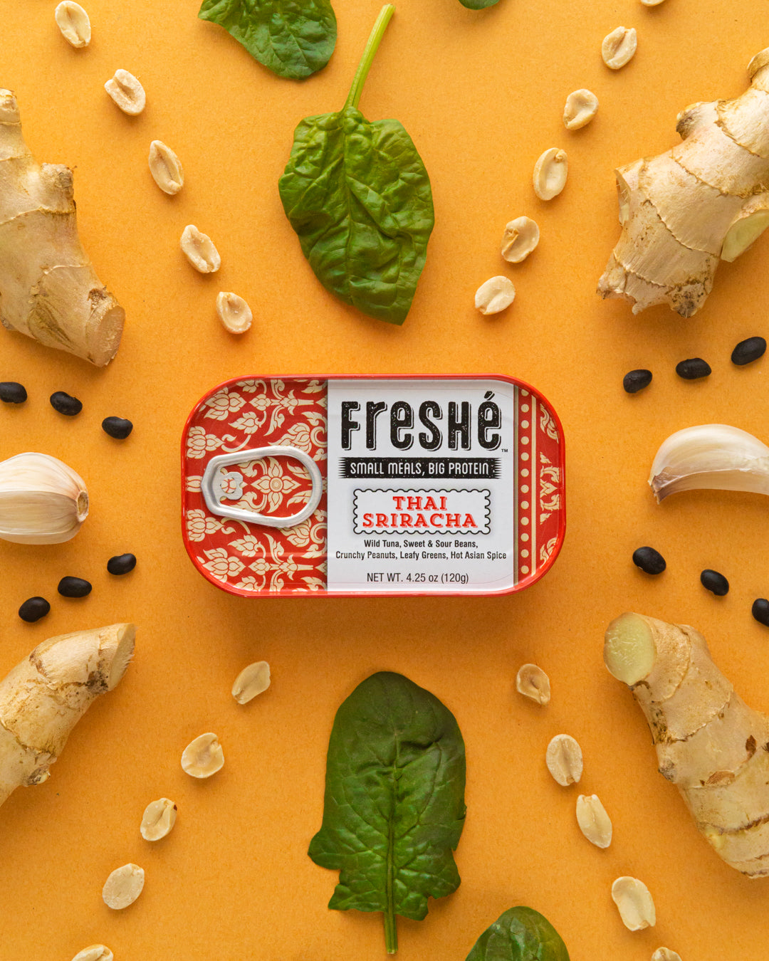 Let Freshé Meals enchant your senses with the vivid colors and piquant flavors of Bangkok’s open-air markets. Our tins of Thai tuna with sriracha include wild-caught tuna, sweet and sour beans, crunchy peanuts, leafy greens, and hot Asian spice that will leave you believing that you’re traveling abroad.